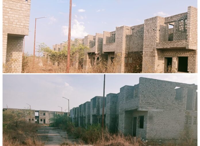 एरंडोल : – सुमारे दहा-बारा वर्षांपासून दहा कोटी रुपये खर्च करून एरंडोल न.पा. तर्फे बेघरवासियांना एकात्मिक गृहनिर्माण झोपडपट्टी विकास योजने कार्यक्रमांतर्गत शहरातील बेघर लोकांचे सर्वेक्षण करून एकात्मिक गृहनिर्माण झोपडपट्टी योजनेअंतर्गत घरकुल योजना मंजूर करण्यात आली होती. या योजनेअंतर्गत न.पा हद्दीतील पुरा भागात लेंडी नाल्याजवळ जागा मंजूर करण्यात येवून जळगाव येथील पद्मालय कन्स्ट्रक्शनला घरकुलाचे काम देण्यात आले होते. त्यानुसार घरकुलांचे काम सुरू झाले परंतु सुमारे दहा वर्षापासून हे घरकुलांचे काम अपूर्णावस्थेत पडले असून आतापर्यंत त्यावर दहा कोटी रुपये खर्च करण्यात आलेले आहेत. परंतु अद्यापपावेतो एकही घरकुल बेघरांना मिळालेले नाही.