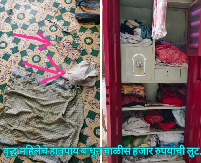 एरंडोल येथील गांधीपुरा भागात वृद्ध महिलेचे हातपाय बांधून चाळीस हजार रुपयांची लुट.